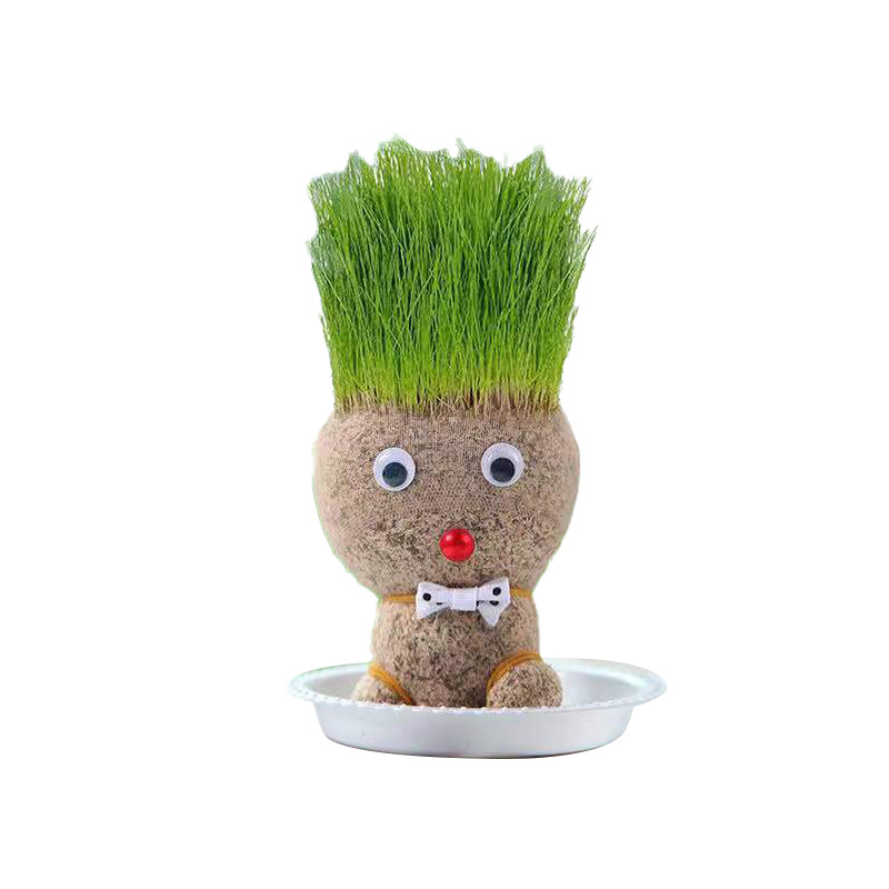 呆萌长草娃娃桌台盆栽浇水长草植物家居办公摆件草头娃娃可批发