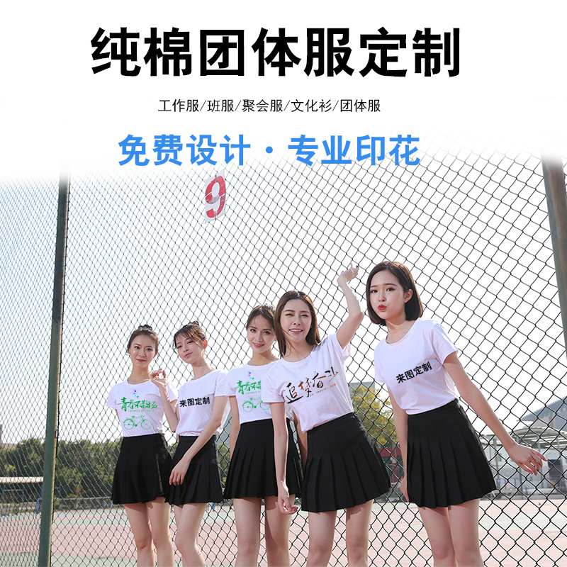 圆领t恤纯棉短袖定 制印logodiy企业广告文化衫班服男女工作服