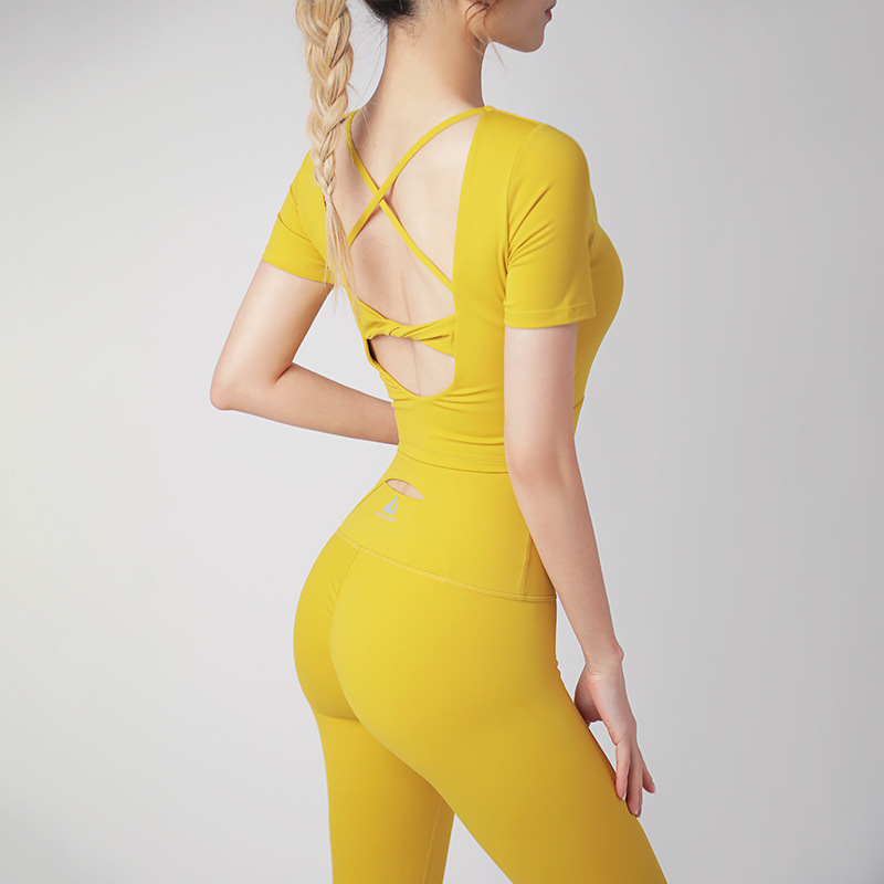 跨境女士运动上衣文胸跑步瑜伽半身短袖内衣透气速干健身T恤