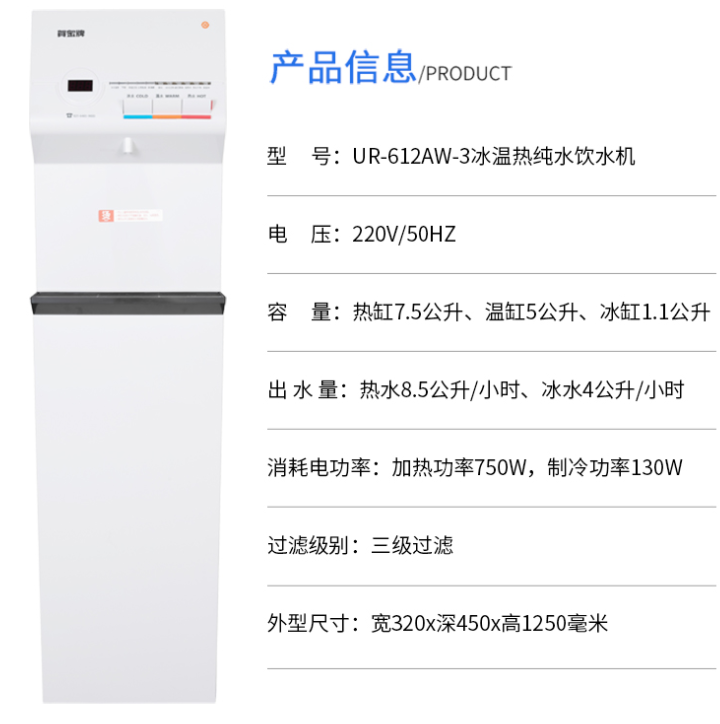 出 水 量: 热水8升/小时, 冰水4升/小时