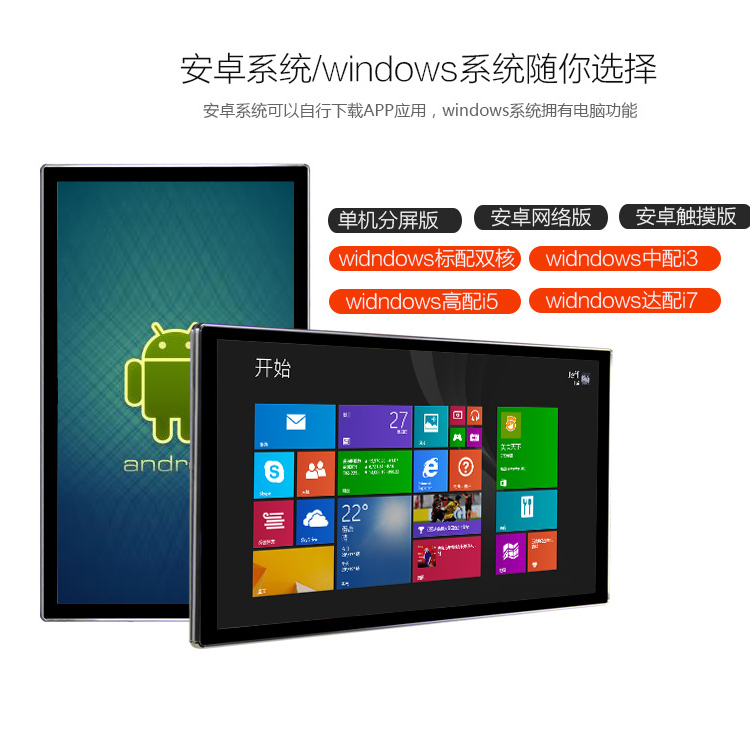 红外触控一体机包括32-65寸的各种款式,可根据客户的要求制作外壳款式、颜色以及主机配置。
