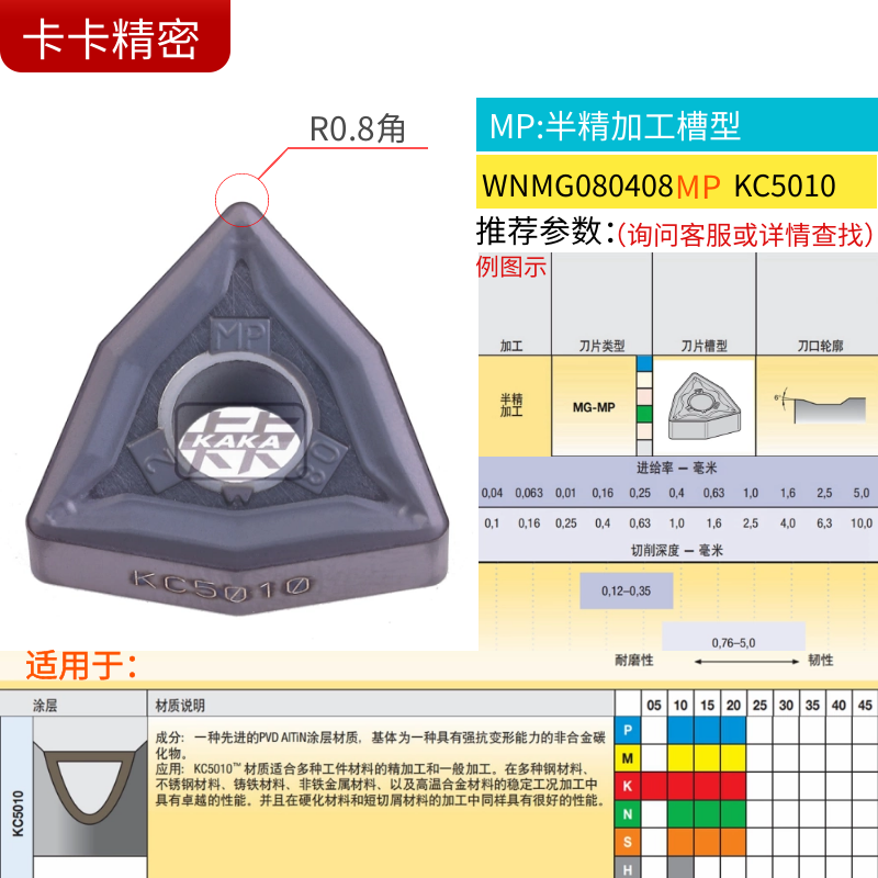 美国肯纳数控刀片WNMG080408MP KC5010知名品牌刀具供应商
