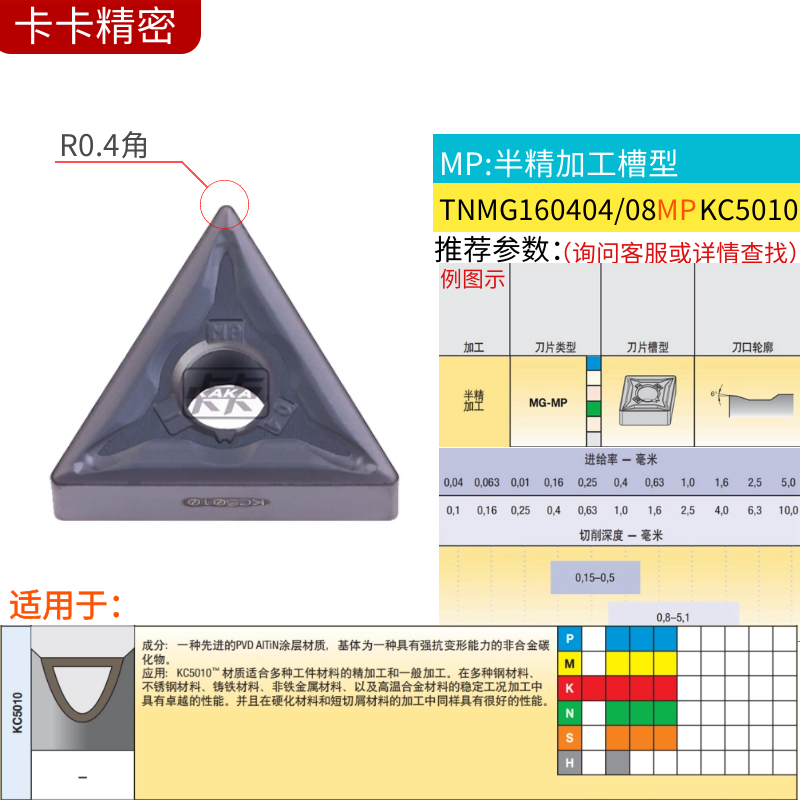 美国肯纳数控刀片TNMG160404MP/TNMG160408 KC5010知名品牌