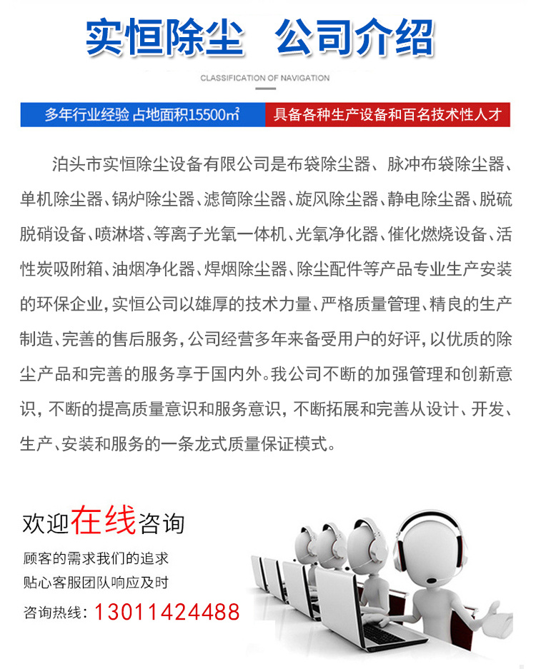 在布袋除尘设备引风机作用下,含尘气体从防爆布袋除尘器的进风口进入,经过气流均化装置,转而向下进入灰斗。由于流速减缓,加上惯性及粉尘的自重作用,使气体中大颗粒粉尘受惯性力作用被分离出来,直接落入灰斗。含尘气体通过灰斗后进入滤袋过滤区,气体穿过滤袋,粉尘被留在滤袋外表面。净化后的气体经滤袋口进入净气室,再由出风口排出。清灰原理:随着过滤时间的延长,滤袋上的粉尘层不断积厚,阻力不断上升,当阻力上升到设定值时,清灰装置开始进行清灰。清灰时,压缩空气以极短促的时间按顺序通过各脉冲阀,经喷吹管嘴向滤袋喷射,使滤袋迅速膨胀产生振动,并在逆向气流的作用下,附着在滤袋外表面上的粉尘被剥离落入灰斗中。粉尘收集:经过滤和清灰被截留下来的粉尘均落入灰斗,再由灰斗口集中排出。