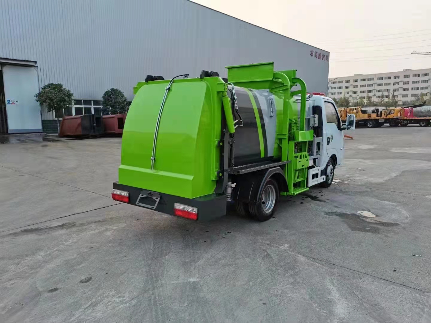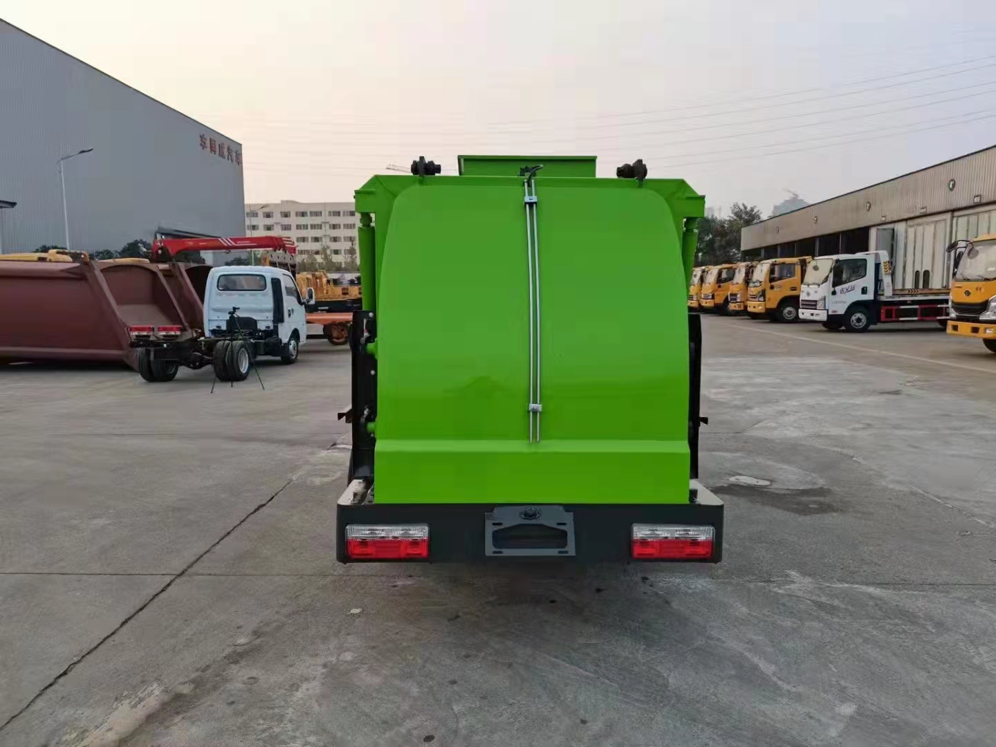 上装配置:箱体采用T700高强度耐厚钢,边2底2,容积4立方,嘉善取力器,合肥油泵;江苏多路阀;国产液压油缸;带推铲卸料功能(不带举升),挤压干湿分离,尾部大梁上左右各安装一个出口带消防接口;液压后盖,后盖带密封条,后盖液压锁紧;双链条提升机;可挂120/240L标准#塑料垃圾桶;驾驶室内集中电控(提升机外部手动控制);后门锁紧与后盖开关的操作具有防误操作,提升机与上盖、推铲具有#防误操作;带#高压清洗 功能,液压马达,清洗泵,自回位巻盘,水枪;车身高位示廓灯/边灯/作业照明灯。司机可不下车完成卸料工作,可选装#遥控器 操作