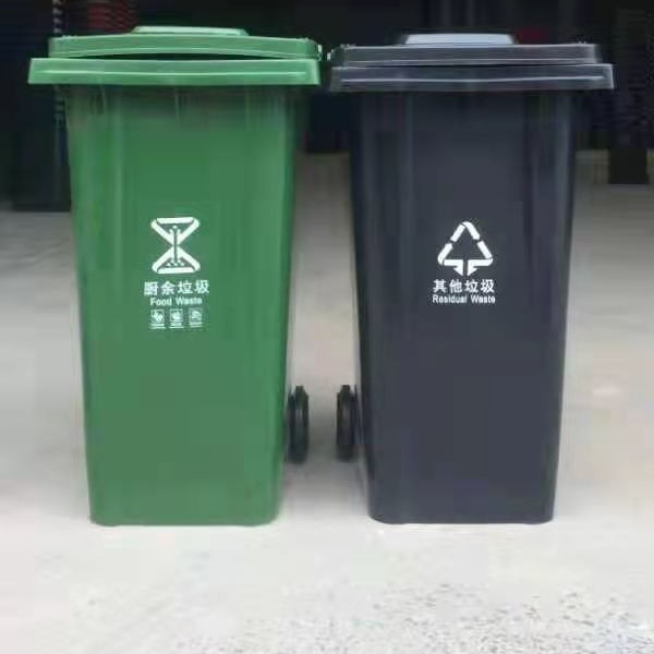 (3)桶身高度(桶口外边口高度):基准高度950mm(允许有误差,但必须与发包人目前的生活垃圾清运车配套使用);(4)产品采用高密度聚乙烯新料一次性注模成型无接缝,外表光滑,容易清洗,桶体壁厚≥4.5mm;单桶体≥10kg(不含盖、轮子和轴等所有其他配件);总重≥14.3kg;