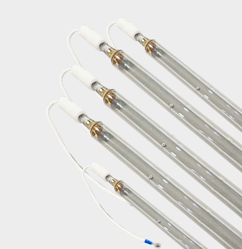强紫外线高压汞灯(简称UV灯)选用进口透紫率高的优质石英管材料及钨钼材料,辐射强高,寿命强,瞬间固化省时省电,无污染。可与进口设备所用的UV灯相互换。该灯光谱范围在350nm—450nm之间,主峰值为365nm.广泛用于晒版,涂料固化,橱柜门、衣柜门、工艺品、办公系列家具、整装套房系列家具、门窗、线条扣板、铝塑板、玻璃、大理石、UV大板、家具PVC封边条、木门、电路板、塑料、UV木线条、钢管UV上光、丝网印刷、纸张上光、印铁制罐、板式家具、UV地板涂装线、UV实木门涂装线等家装材料,光敏字符固化,软包装彩印,PVC装饰板印花油墨固化,竹木地板,木地板,光敏树脂图层固化,光敏印铁油墨固化及各种工件上的光敏油墨固化等生产生活领域;也应用于印刷线路板光敏焊剂固化,光化学反应等高新技术领域。本厂生产的UV灯规格齐全,质量上佳,并可以根据客户要求设计定制。
