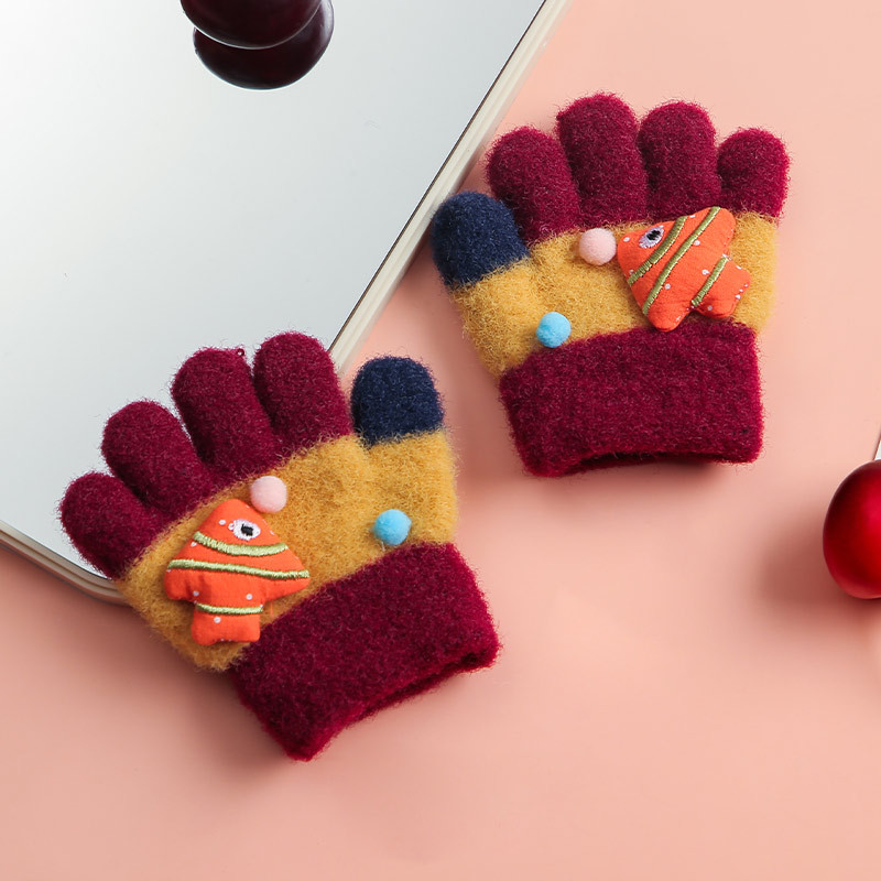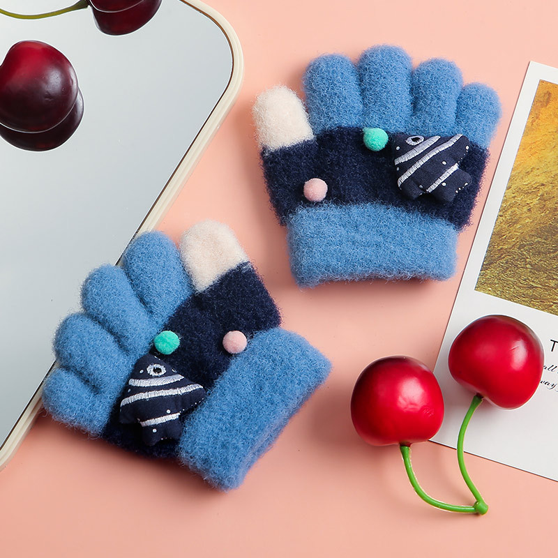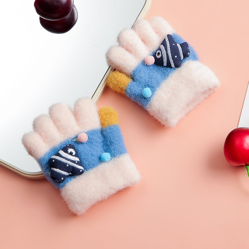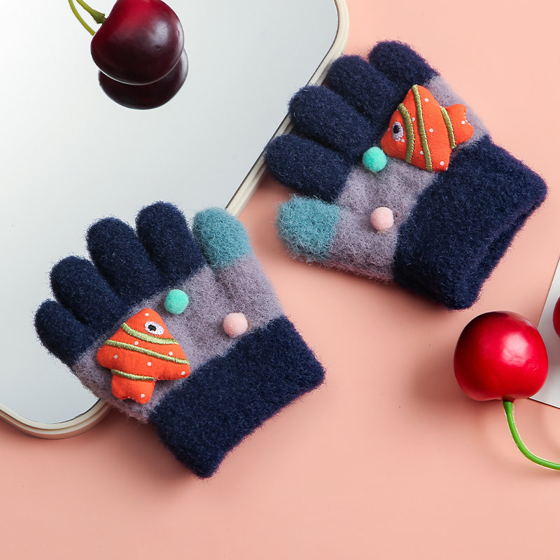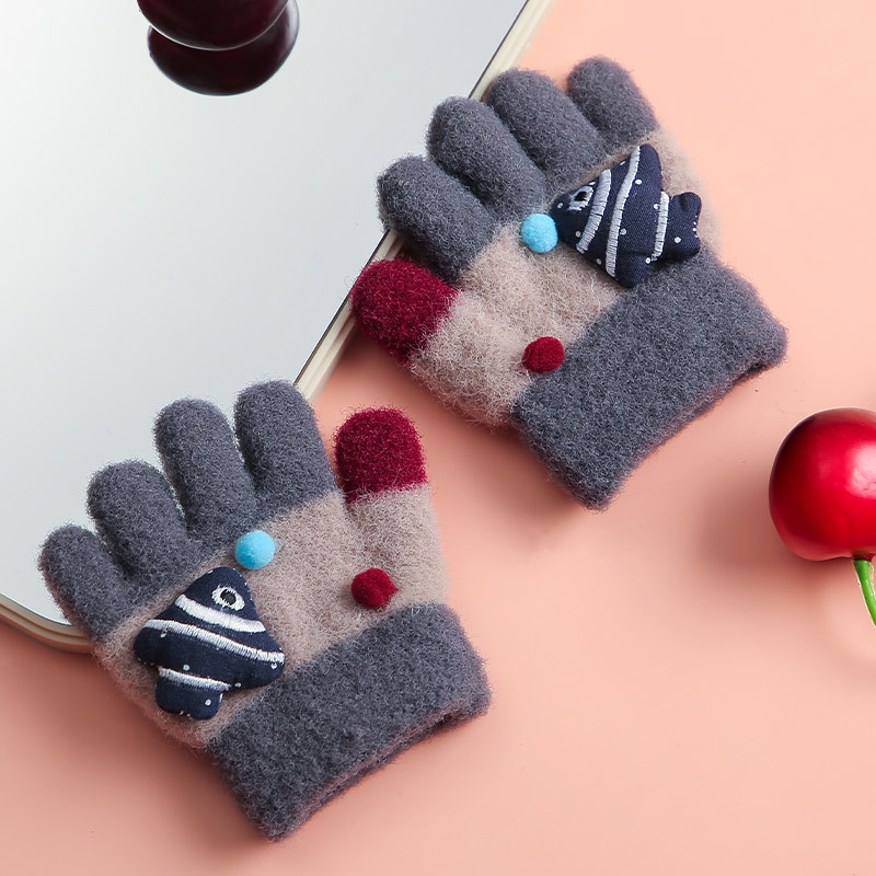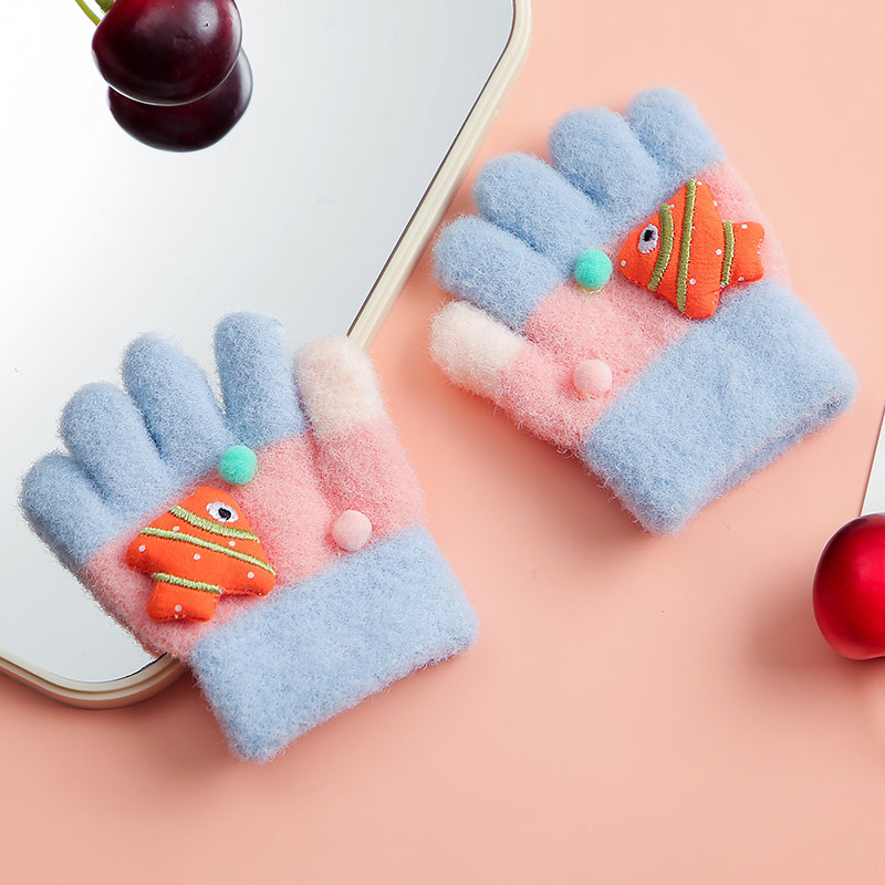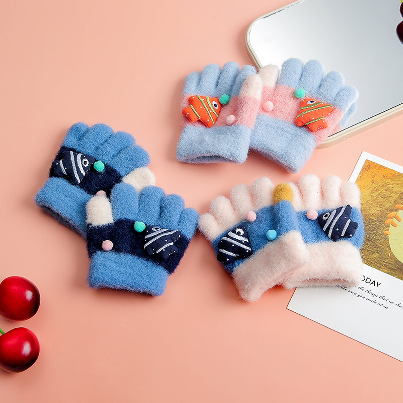 儿童婴幼儿手套户外分指动物鱼手套冬天加绒加厚保暖防寒五指手套