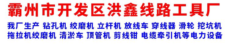 霸州市开发区洪鑫线路工具厂成立于1982年,位于河北省霸州市市。是一家专业生产销售线路工具的厂家。主要产品有:电缆拖车、立杆机、铝合金人字抱杆 汽油机绞磨 柴油机绞磨 顶管机 电缆放线架 电缆滑轮 等。公司目前旗下有员工�60人,年产销1000辆,年销售收入近100万元。公司一贯坚持“质量,用户至上,优质服务,信守合同”的宗旨,凭借着高质量的产品,良好的信誉,优质的服务,产品 全国近三十多个省、市、自治区以及远销非洲、伊拉克 俄罗斯等。竭诚与国内外商家双赢合作,共同发展,共创辉煌!