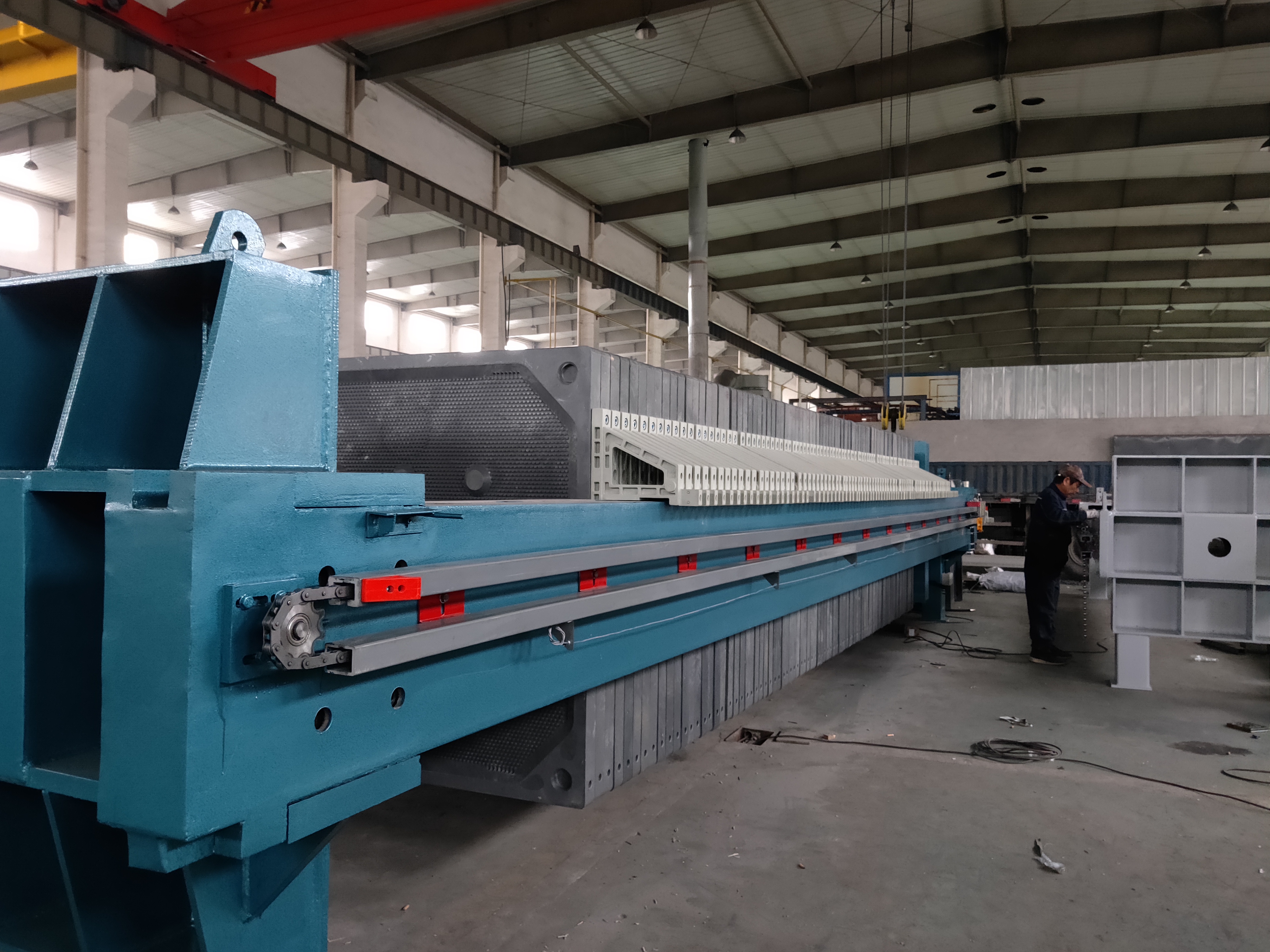 建筑工地打桩泥浆脱水干化压滤机是一种间歇式的加压过滤机设备,用于各种悬浮液的固液分离,分离效果好,使用方便,适用于大型过滤行业,要求自动化程度高或集中控制,过滤压力0.6Mpa左右的过滤领域。整机采用机、电、液一体化设计制造,能够实现自动压紧、过滤、穿流、压榨、松开、拉板等过程,具有自动化程度高,生产能力大,滤饼中含液率低,单位产量高,占地面积小的特点。广泛用于石油、化工、染料、冶金、制药、食品、造纸、洗煤及污水处理等各种需要进行固液分离的领域。