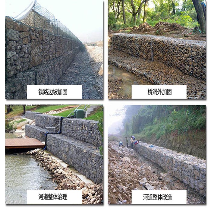 石笼网的网箱还可以制作成三角形、梯形的,这样的石笼网网箱堆砌的堤坝,斜面在一个平面上。