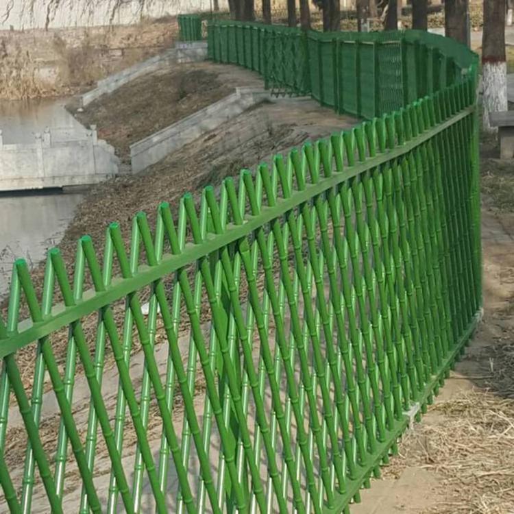 仿竹围栏又叫仿竹护栏、仿竹节护栏、景观护栏、园艺护栏、仿竹栅栏,原材无磁不锈钢管,后做浸塑处理,颜色可选绿色黄色等。外观新颖大方,使用寿命长!公园绿地仿竹篱笆广泛应用于草坪花池围栏,河道护栏,市政绿化仿竹护栏、新农村建设仿竹篱笆、别墅庭院围栏,是新时代新型护栏的代表。公园绿地仿竹篱笆给大家带来了视觉上的盛宴。与PVC草坪栏相比和锌钢护栏、锌钢围栏、锌钢栅栏等产品相比 ,其本身的强度、抗老化能力等各项指标占优。以它生态化的外观和不锈钢材质的优点,较传统草坪护栏、锌钢护栏、锌钢围栏等产品有明显的寿命长、不生锈、样式新颖、美观大方、紧贴我国传统竹文化主体等明显优势;是景区、公园、绿地、城市街道、别墅区以及农家院的理想隔断。