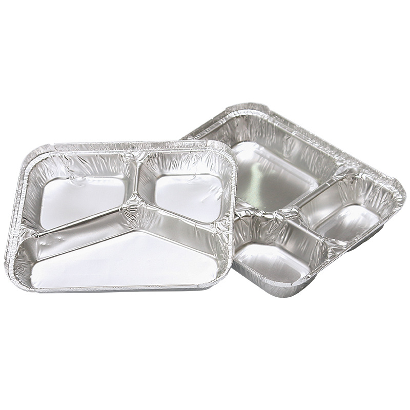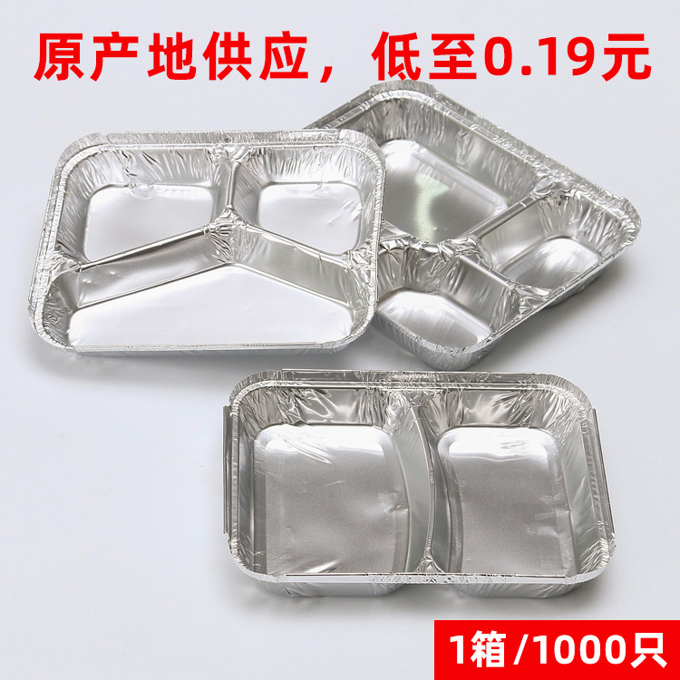 厂家直供多格锡纸盒 铝箔餐盒 快餐牛排打包盒 一次性 二格 Y三格 大四格 保温餐盒