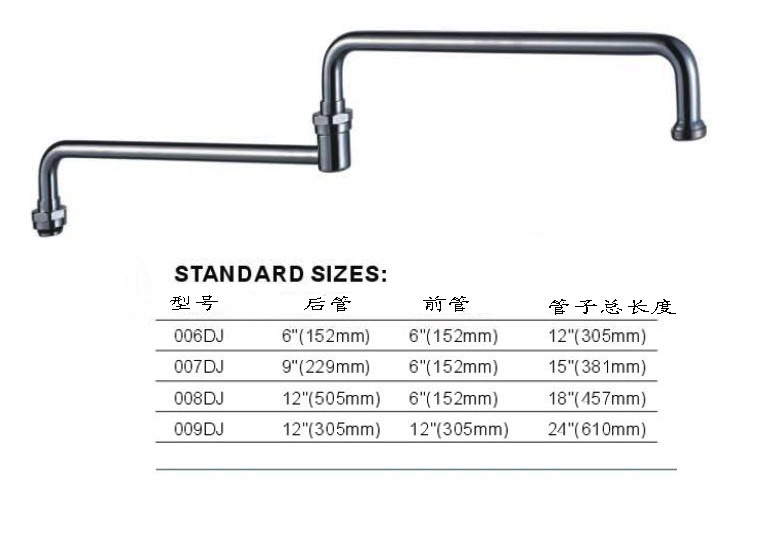 配有不同长度的出水管,总长度分别是12"15"18"24",适合冷水或热水