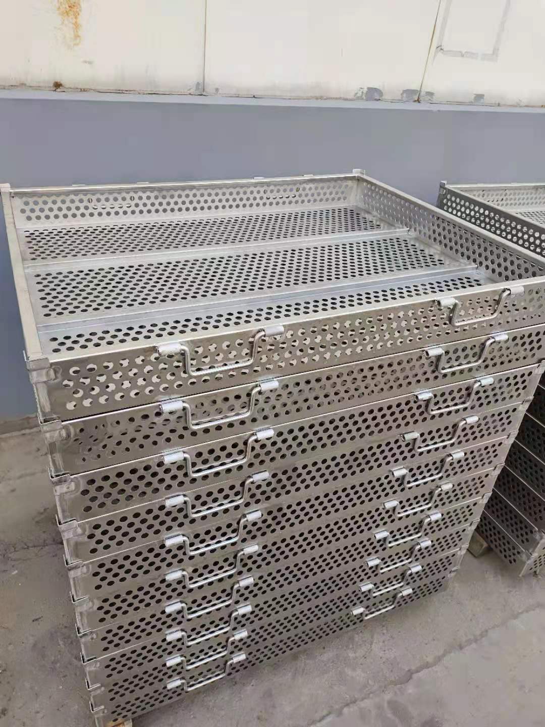 我们公司位于山东省潍坊市诸城开发区.我们公司主要生产的不生锈钢灭菌筐,杀菌锅专用喷淋式灭菌盘.以及小车托盘等。主要配套杀菌锅来使用,有常规尺寸,也有根据产品的高度特殊定做的,侧边可冲孔、也可不冲孔,还可设计成可自由拆卸的,便于食品的装卸。广大食品厂家也可根据自己产品特点直接订购适合自己产品尺寸的筐子。材质有不锈钢304,316,201等。板材厚度不同:0.8不锈钢材质可以杀豆腐干、海鲜等小包装产品,1、1.2、或1.5材质的可以杀玉米等稍大一点的产品。按杀菌锅类型分侧喷式的和普通型的,板材厚度根据客户实地要求订做。