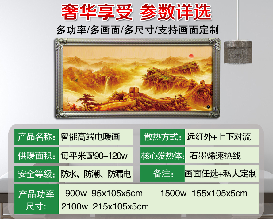厂家直供 取暖壁画壁挂 有框碳纤维电暖画 即热式电暖画,手机远程遥控