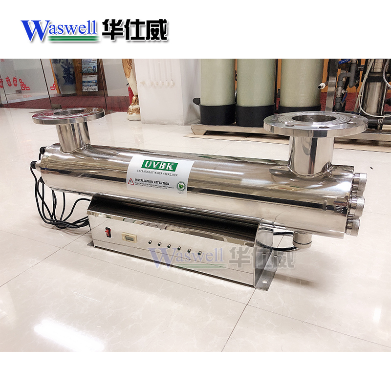 紫外线消毒器采用304食品级不锈钢作为筒体,在运行过程中, 不会添加任何化学试剂,不会对水造成二次污染,而253.7nm波长的紫外线被科学证实,这个波长是杀灭细菌 的一个波长。紫外线光根据细菌的不同,杀菌时间也不同,在水流量相同的条件下,紫外线消毒器设备功率越大,照射时间越长,杀菌效果也就越好,反之亦然。