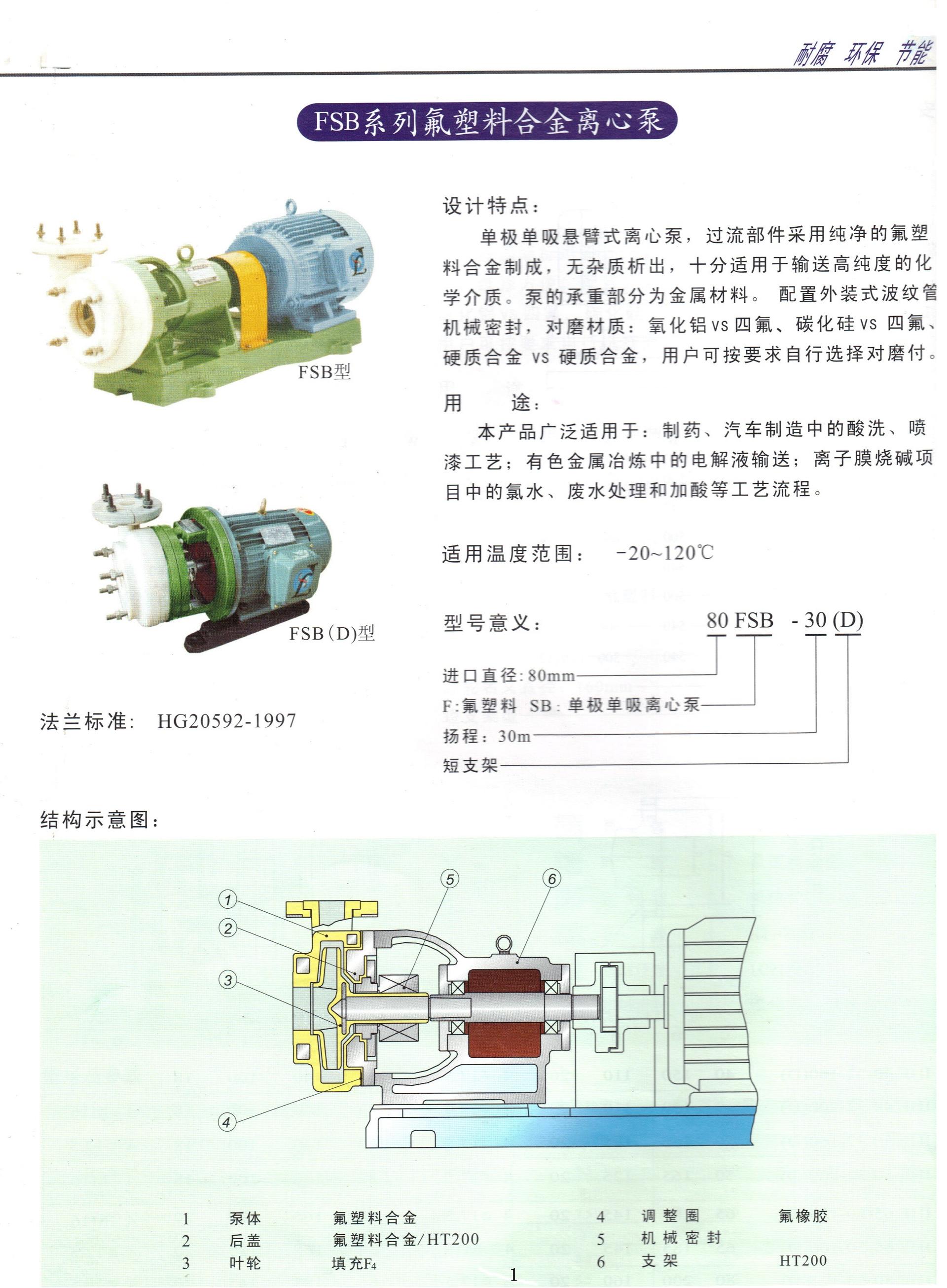 FSB泵采用特种泵工艺加工制造。适合于在 -85 ℃ ~ 200 ℃ 条件下 , 长期输送任意浓度的任意介质酸、氧化剂及腐蚀性介质。因而广泛应用于化工、石油、制药、染料、油漆、冶炼、造纸、电镀、电力、食品等行业。