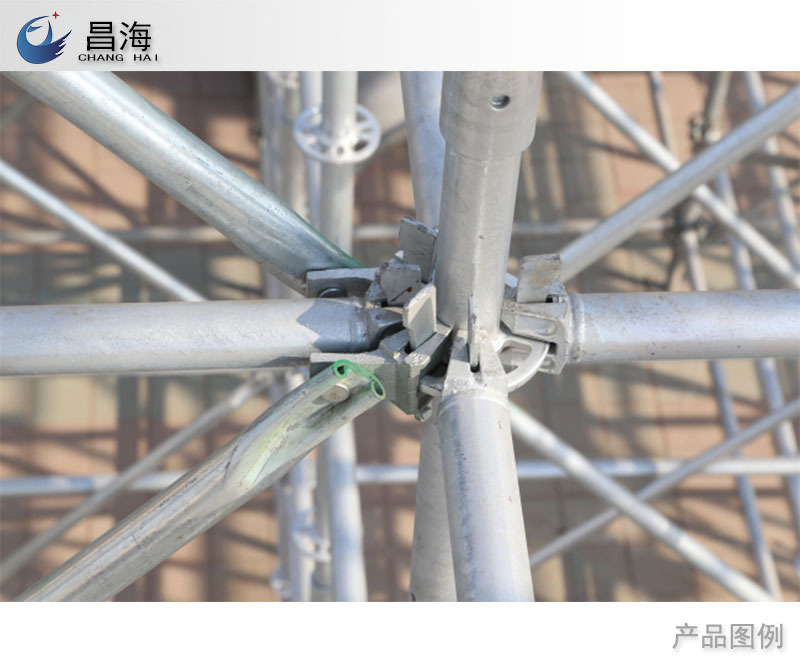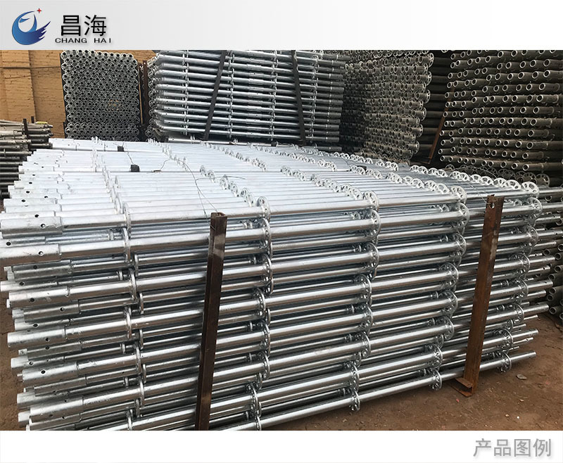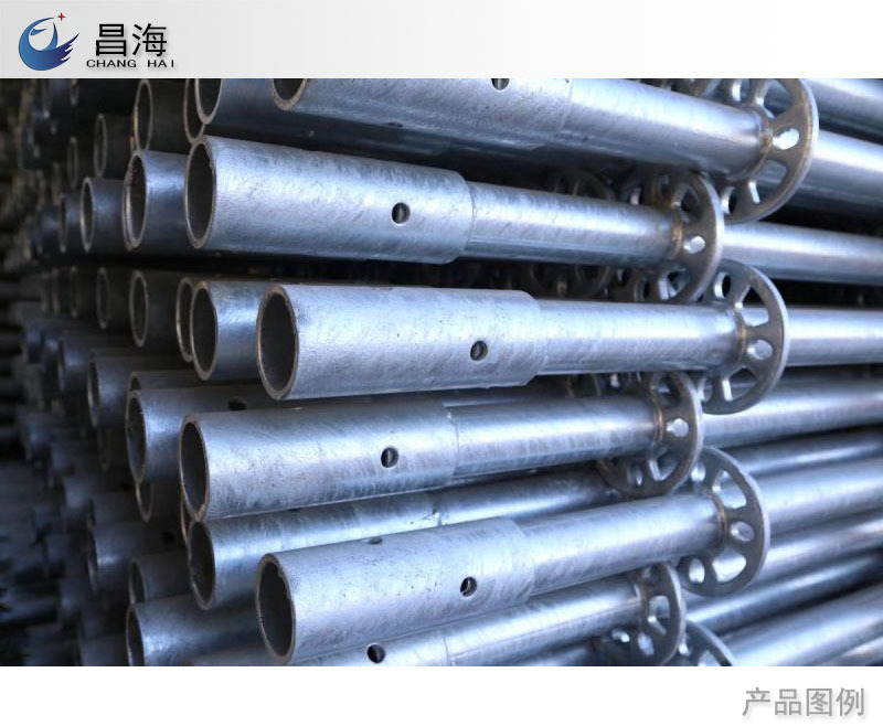 盘扣式脚手架也叫圆盘脚手架,主要构件有:立杆、横杆、斜拉杆、顶托、底座、脚手板、梯子等。是一种新型脚手架,广泛用于楼宇、高架桥梁、地铁隧道、厂房、舞台搭建、室内外装修、大跨度建筑、各类水利工程、船体修造等。昌海脚手架生产的盘扣立杆产品是用低压流体高强度焊管( ∮48.3X3.2mm,∮60.3X3.2mm ),通过全自动焊接设备(金狮焊机)焊接而成,均使用Q355B低碳合金结构钢,整体稳定强度比其他脚手架提高20%,产品表面采用内外热镀浸锌防腐工艺处理,提高了产品使用的时间,大气美观的银色也为工程晋升了形象。目前国内建筑行业迅速发展,特别是近几年脚手架应用的范围优势,新技术,新材料,新工艺不断开发并被利用到建筑行业,为建筑行业提供了更多的新鲜血液。