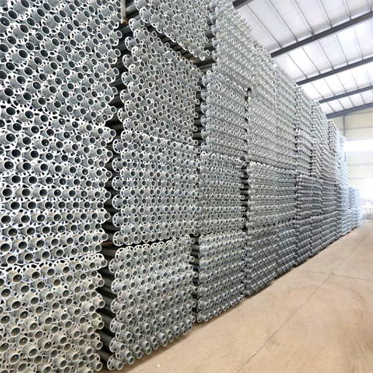 盘扣式脚手架也叫圆盘脚手架,主要构件有:立杆、横杆、斜拉杆、顶托、底座、脚手板、梯子等。是一种新型脚手架,广泛用于楼宇、高架桥梁、地铁隧道、厂房、舞台搭建、室内外装修、大跨度建筑、各类水利工程、船体修造等。昌海脚手架生产的盘扣立杆产品是用低压流体高强度焊管(∮60.3X3.2mm ∮48.3X3.2mm ),通过全自动焊接设备(金狮焊机)焊接而成,均使用Q355B低碳合金结构钢,整体稳定强度比其他脚手架提高20%,产品表面采用内外热镀浸锌防腐工艺处理,提高了产品使用的时间,大气美观的银色也为工程晋升了形象。目前国内建筑行业迅速发展,特别是近几年脚手架应用的范围优势,新技术,新材料,新工艺不断开发并被利用到建筑行业,为建筑行业提供了更多的新鲜血液。