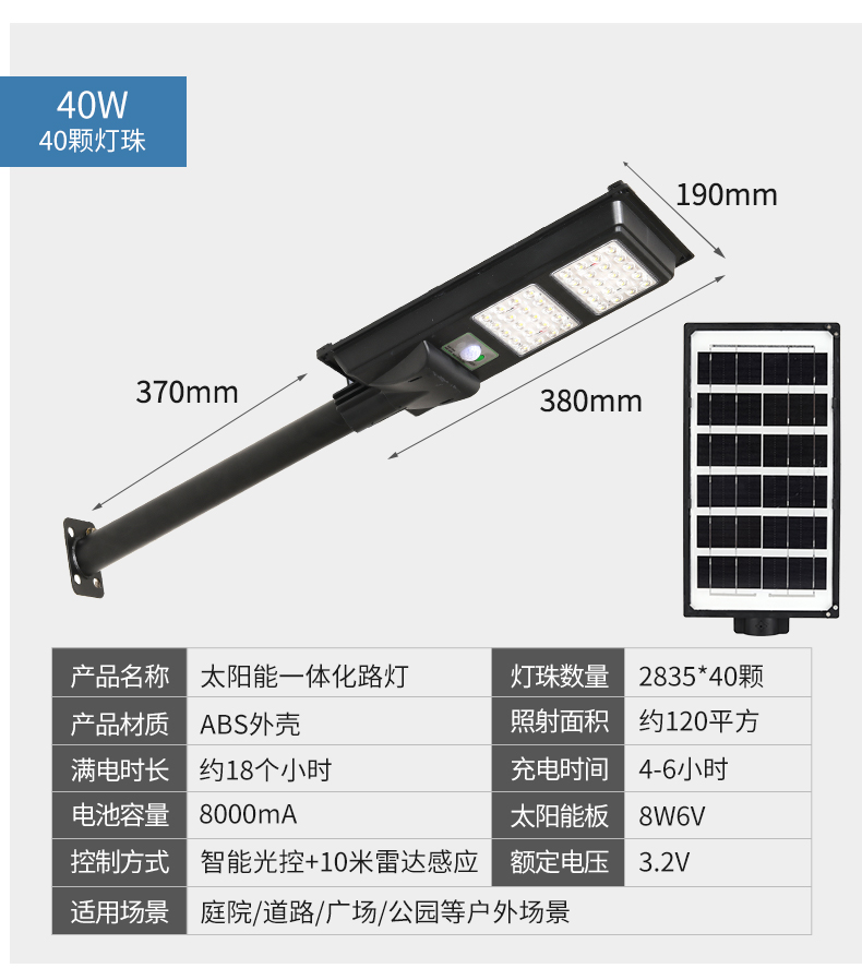 一体化太阳能路灯 太阳能LED路灯 农村户外庭院灯 家用感应壁灯