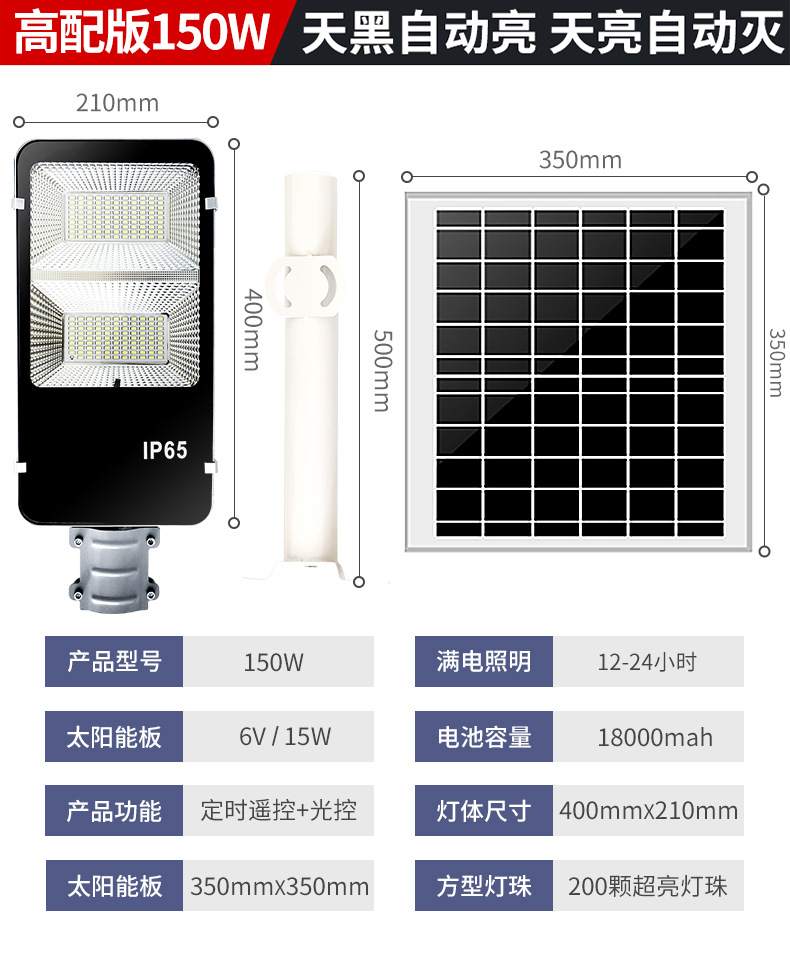 太阳能路灯庭院花园感应分体式LED光伏户外感应家用农村太阳能灯