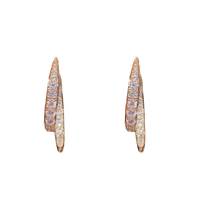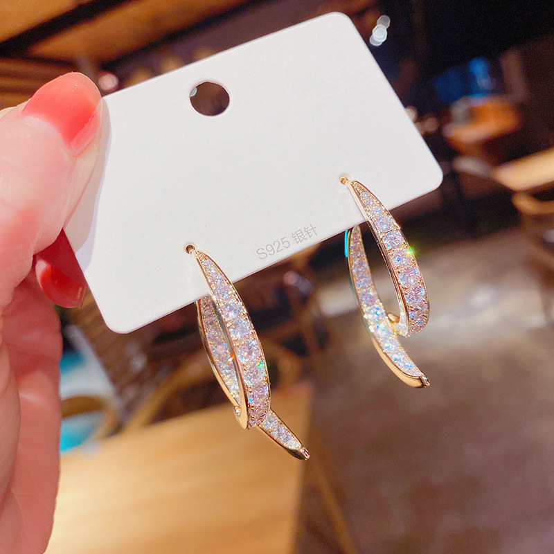 韩国设计款前后两戴交叉耳环女s925银针新款高质感镶钻几何耳饰潮