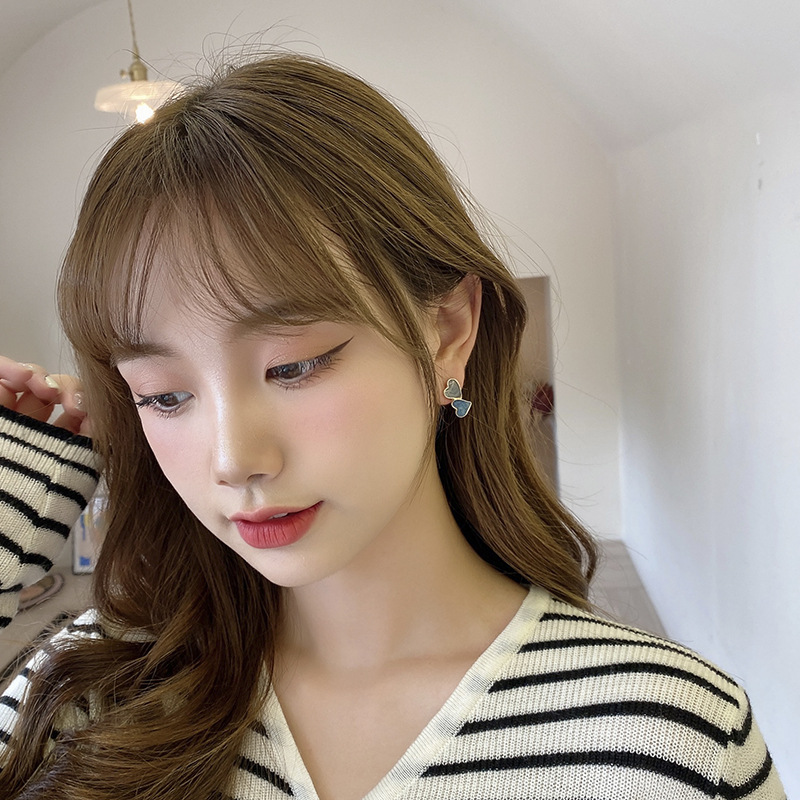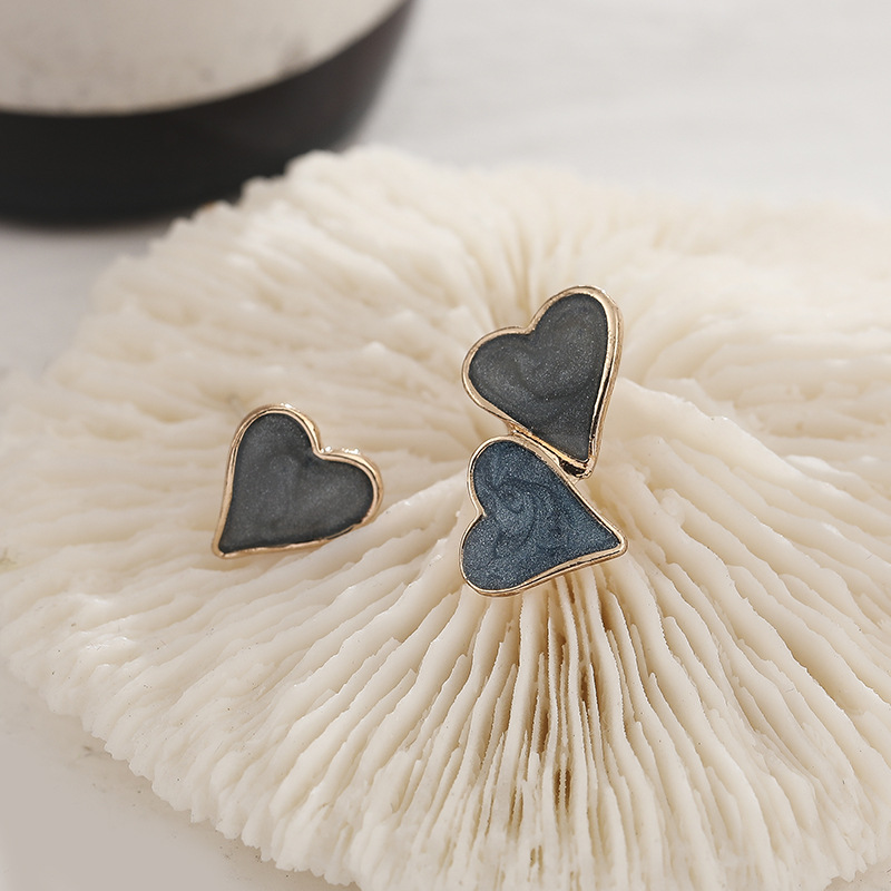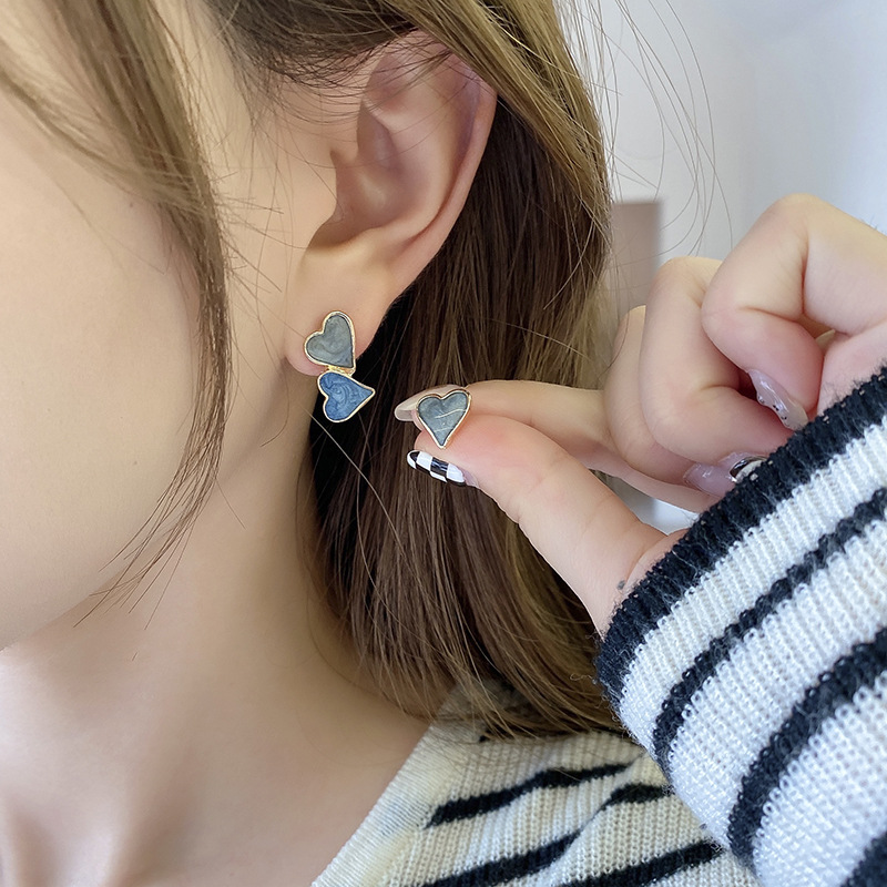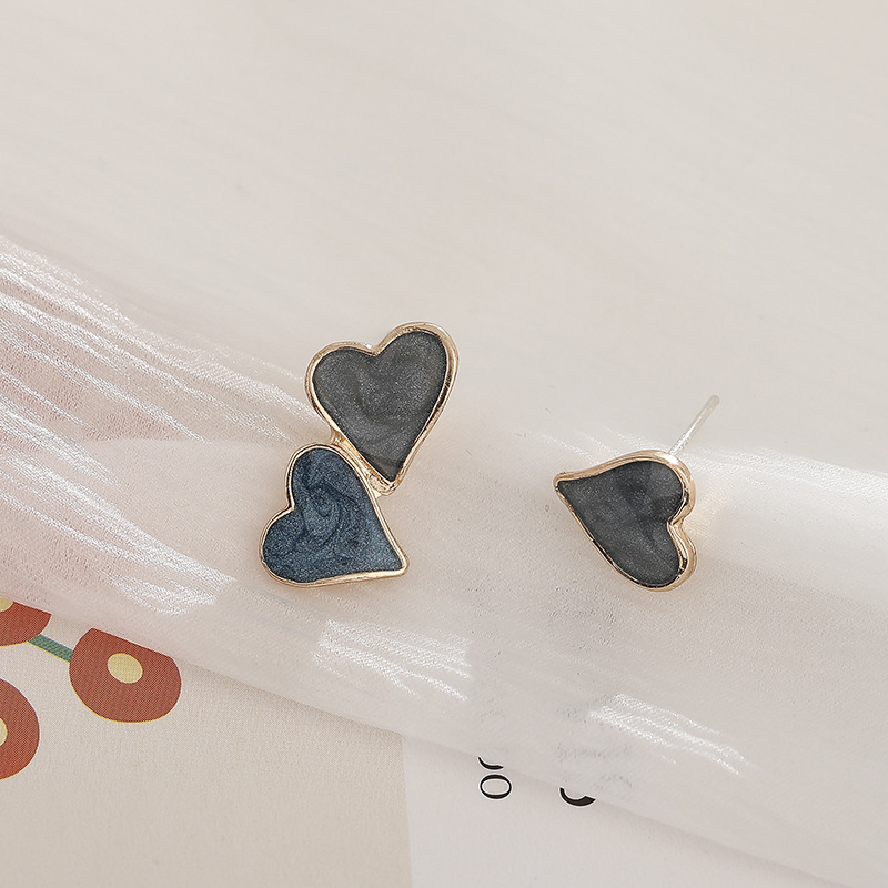 S925银针耳钉无耳洞耳夹不对称设计感蓝色爱心百搭小清新耳环耳饰