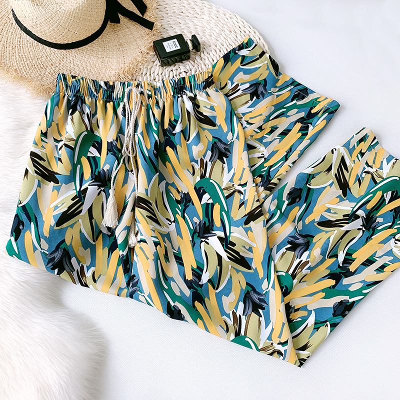 冰丝雪纺印花裤 度假沙滩阔腿裤 服装加工