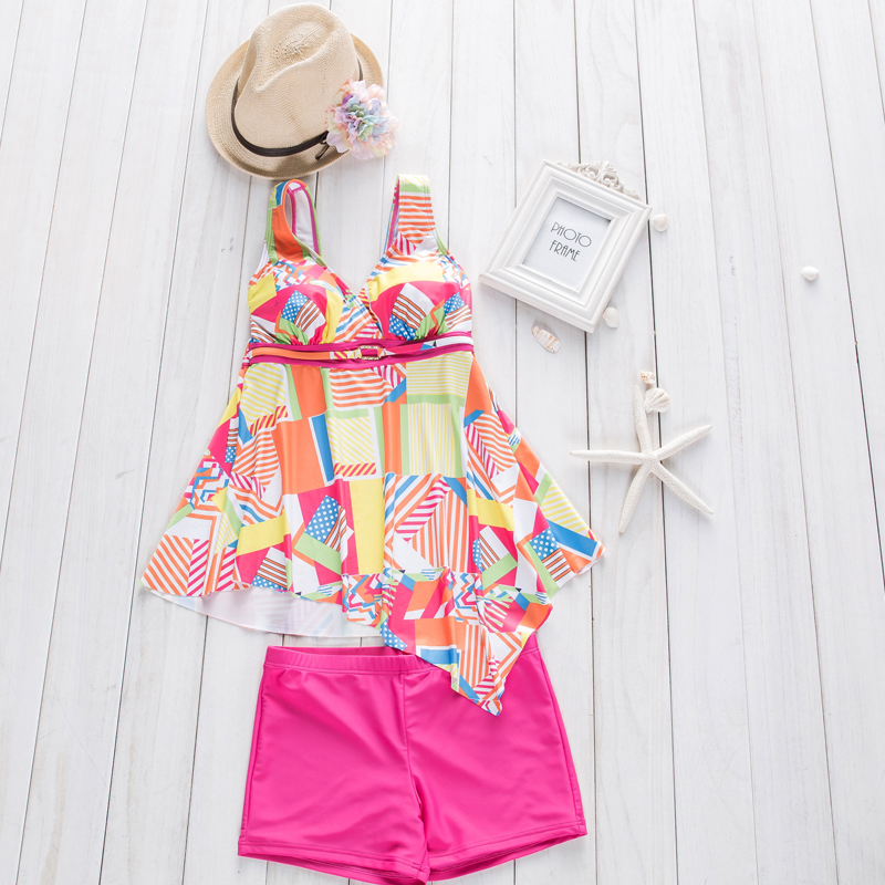 保守泳衣女分体裙式平角裤大码遮肚显瘦小胸聚拢温泉泳装
