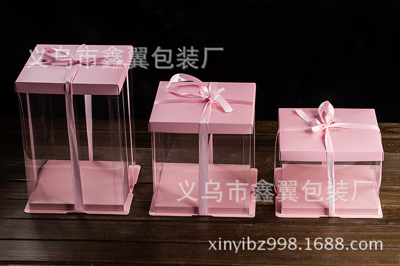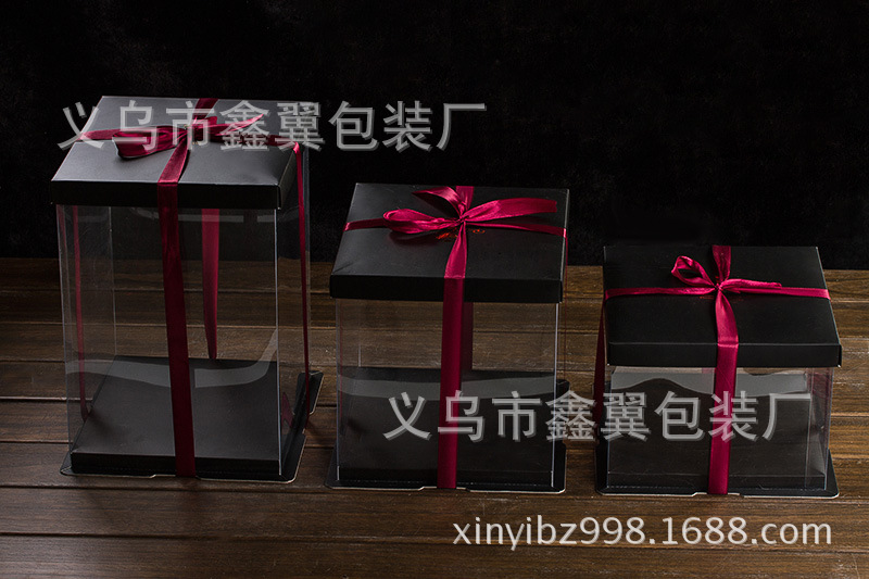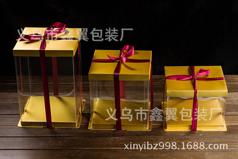 烘焙包装透明纸塑蛋糕盒三合一烫金蛋糕盒