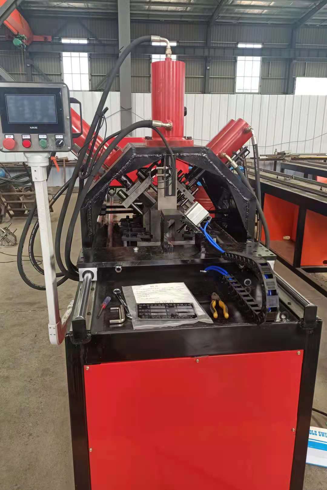 数控液压机,速度快,精准度高,节省人工,结实耐用,操作简单,不需专业人员,机器适用于角铁法兰,电力支架,需要冲孔切断的产品,我们都可以设计订做机器。