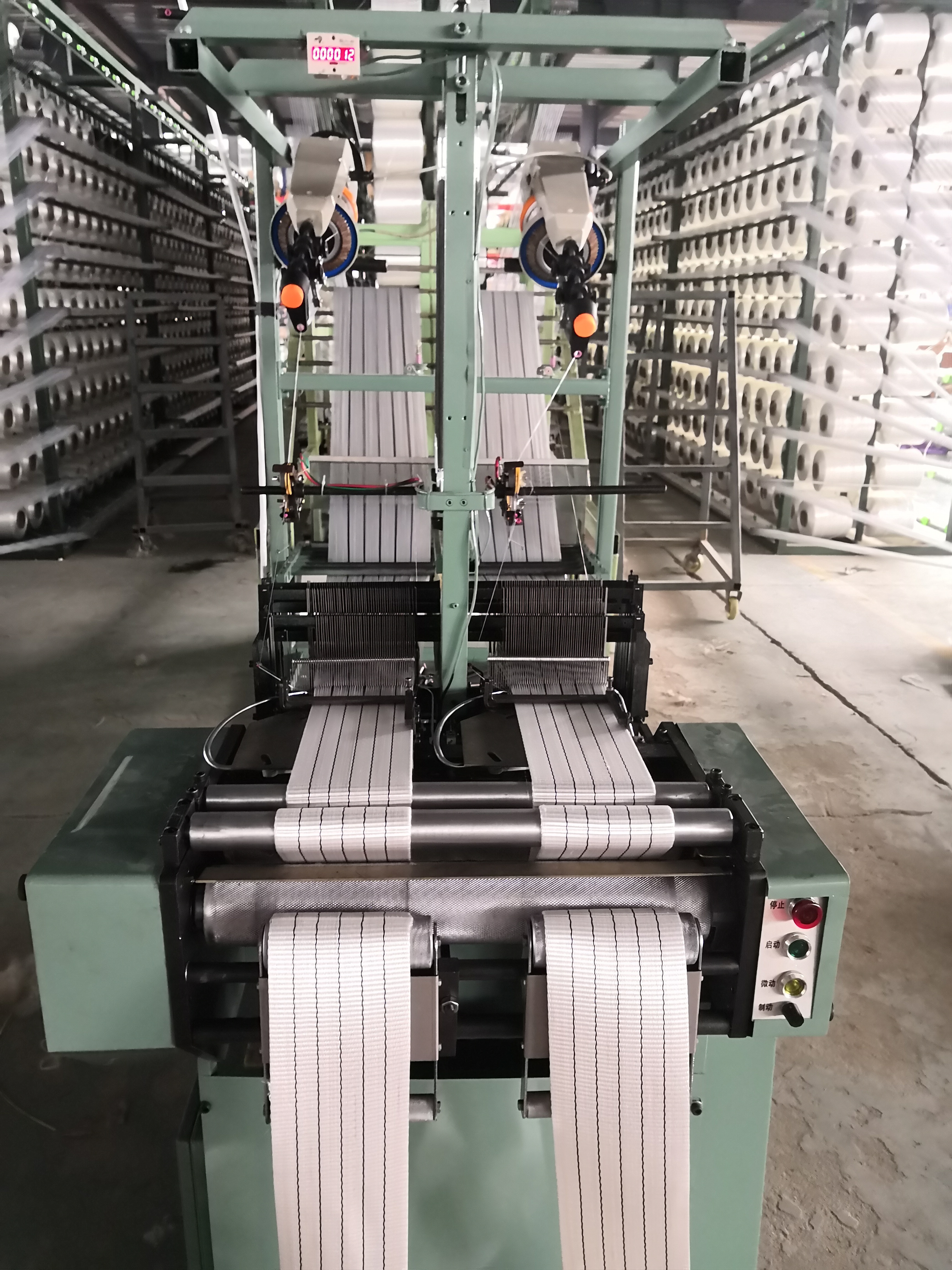 ZGF-858-150G 130G重型织带机采用自动送纬,变频调速,制动电机,含锁也机构,具有良好稳定性,易维修.可编织厚度达3-5mm的重磅带,可编织吊装带、索具带、帆布带、落伞带、汽车安全带、pp带等各种规格的重磅带。