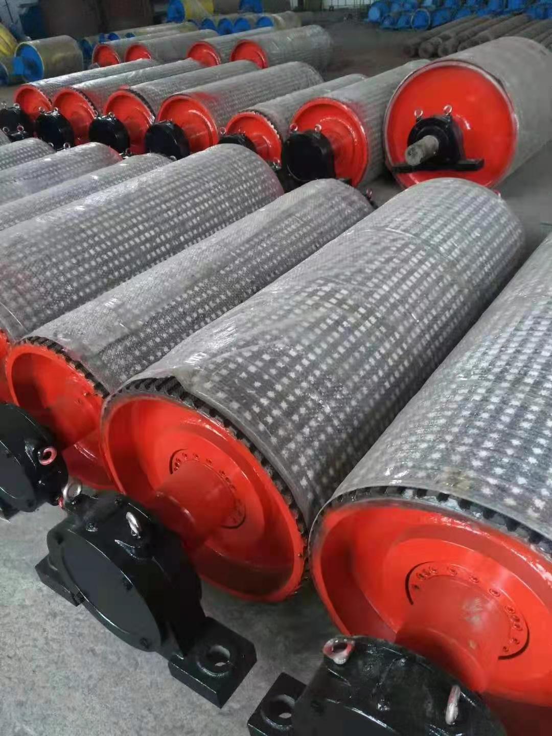 滚筒包胶已广泛应用于矿山、港口、电厂、钢铁厂、水泥厂、煤矿等行业的输送机托辊滚筒的包裹橡胶板和陶瓷胶板。