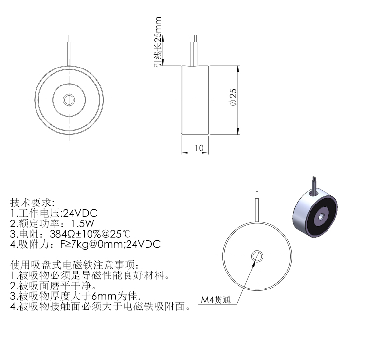 中山市电磁铁H2510 小型圆形吸盘 24V电压