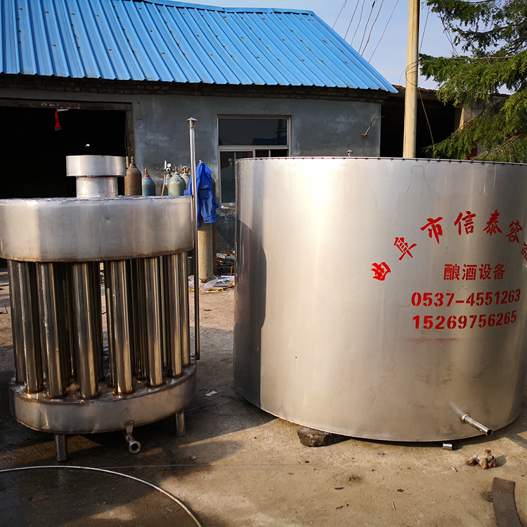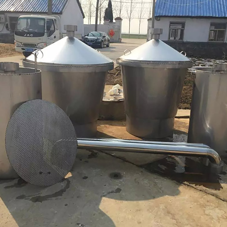 本公司生产的酿酒设备用于固态发酵、液态发酵和原料酒糟中的白酒蒸馏,是白酒生产的关键设备。冷却设备采用多层、多套管水冷却,冷却成本低,冷却面积大;具有冷却速度快、冷却效率高、出酒快、温度低、酒品质好的特点;耐腐蚀、不泄漏。