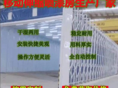 3、伸缩移动喷漆房整体为框架传动结构,每组框架间均有阻燃PVC布密封连接,安装快捷、外形美观,结构精巧,使用方便;