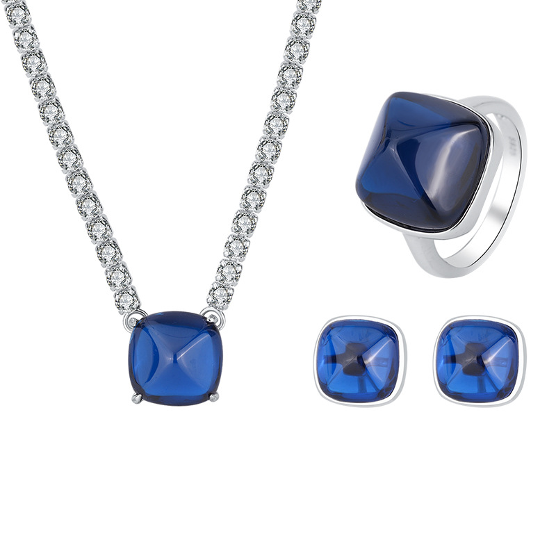 S925通体银抖音热卖仿真糖塔耳钉戒指 满钻项链套装主石12*12