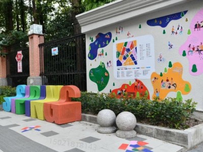 小区内的字母坐凳、让来来往往的行人走走停停、在快节奏的生活里让人们可以坐下欣赏一下小区的风景、感受一下这里居住人的生活环境,字母坐凳作为景观点缀的同时也方便了居民。