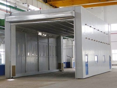 总之,整体移动喷漆房的设计目的是为了满足磨削或喷涂较大工件的需要。一般每套对应2-3个排气净化站。当哪个工位上的工件需要喷漆时,房间移动到那个工位,其他工位可以继续抛光。当室内的工件涂漆后,控制移动室移动到抛光工件工位。这种设计可以实现大型工件的不间断连续涂装。房屋为钢结构,房屋的立柱下有两个电动行走机构,行走机构沿地面轨道行走。移动房两端安装电动卷帘门。当房间行走时,门上升,当房间到达位置时,门着陆并关闭。门和行走机构由电气控制部分连锁控制。门升起后,房间可以移动和行走。