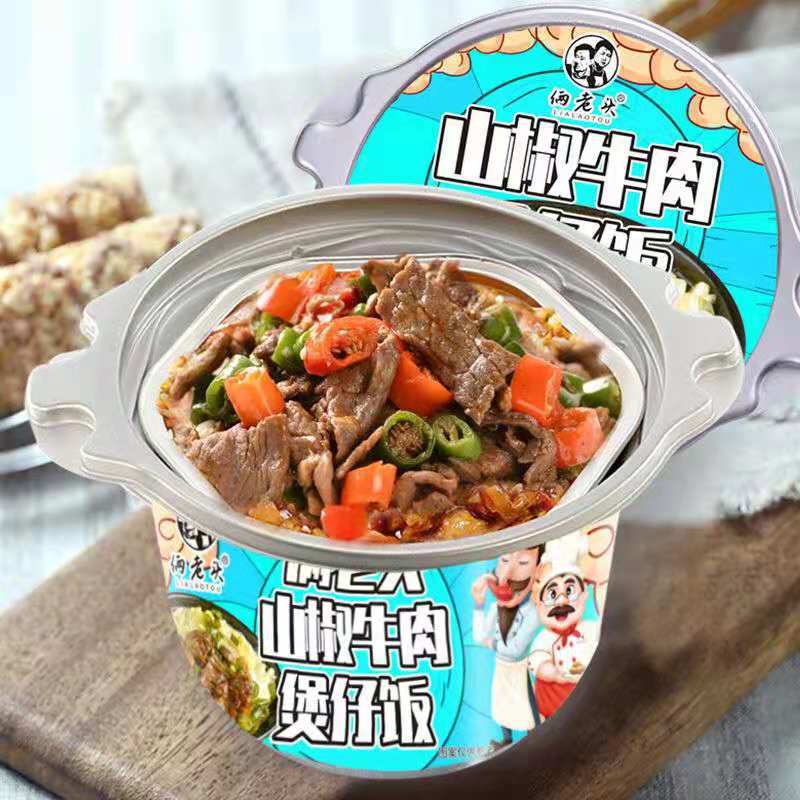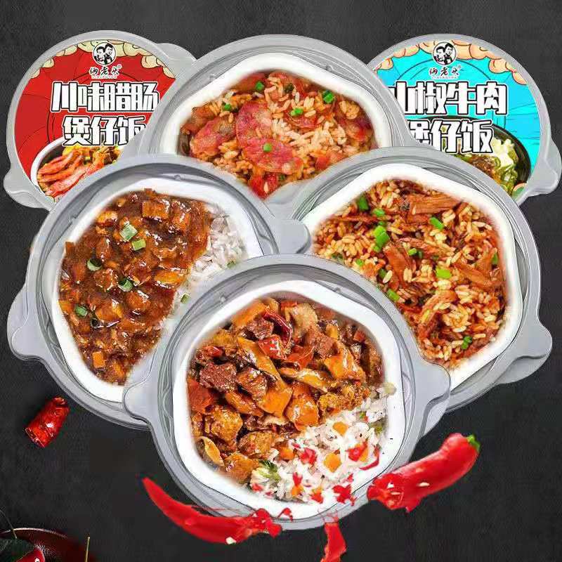 包装规格山椒牛肉煲仔饭2桶,香菇牛肉煲仔饭2桶,川味腊肠煲仔饭2桶,台式卤肉煲仔饭2桶,脆笋牛肉煲仔饭2桶