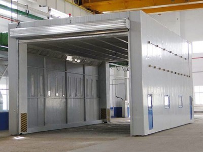整体移动式喷漆房排风方式常见的有两种: 一种是侧进风(或房顶部)、侧排风。这种排风设计管道在房体之外,长度与整体移动房体的行程相同。外侧排风管道上设若干个电动风阀,而在房体侧面设置若干个喷漆或打磨工位,并在此处通过伸缩汽缸实现与排风管道的自动对接。漆雾收集采用玻纤地棉过滤,过滤棉框嵌入喷漆房墙体的排风一侧,而另一侧墙体或者房顶设置进风过滤系统。 另外一种排风方式是上进风、下排风。这种设计为地沟排风,漆雾废气通过地沟引向漆雾处理器,干式或者湿式漆雾处理设备都可以。漆雾处理器可设置在不影响其他工作的任意位置。主体地沟的长度应与房体的行程相同,地沟上面封闭,可设置电动风阀,按照工作的实际情况打开或关闭风阀。也可以排风口上面设置格栅,并设有密封门,房体行走到那个工位,就把对应的排风口打开。采用地沟方式排风,进风过滤系统设置在房顶。