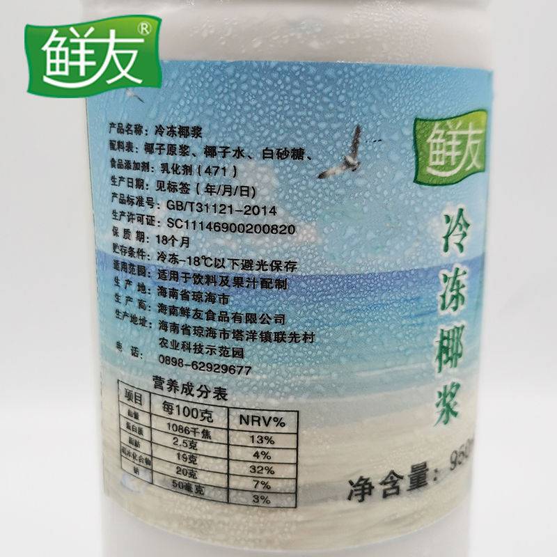 鲜友冷冻椰浆新鲜椰果榨取椰浆杨枝甘露水果茶奶茶原料冷冻椰子乳