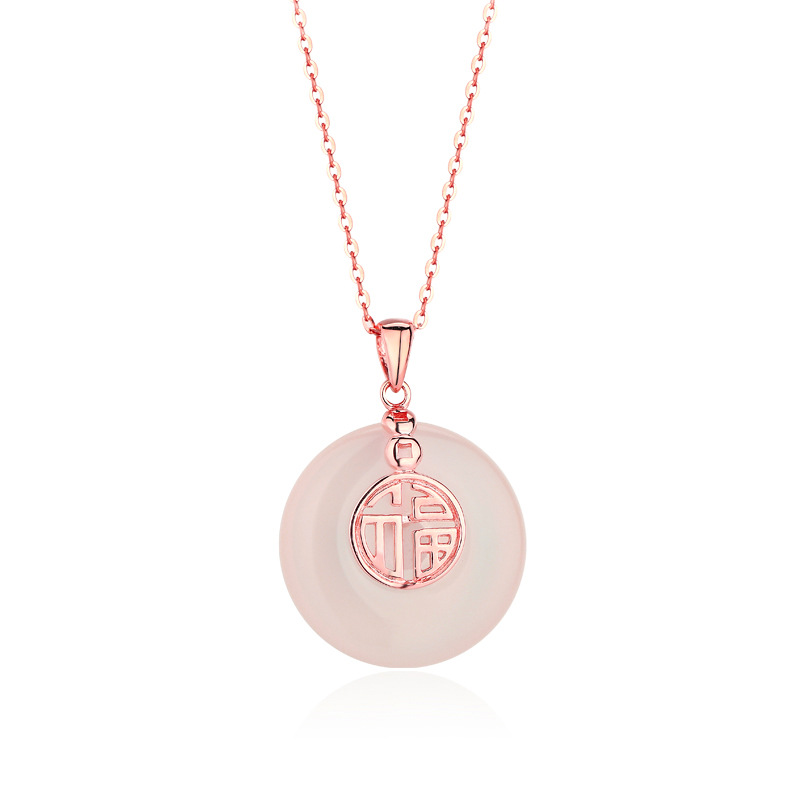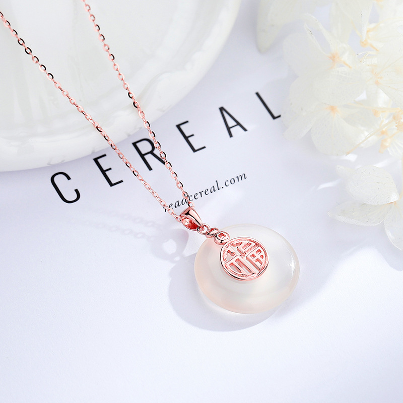 天然白玉髓仿和田玉吊坠女款项链宫廷古风s925纯银锁骨链福字项坠