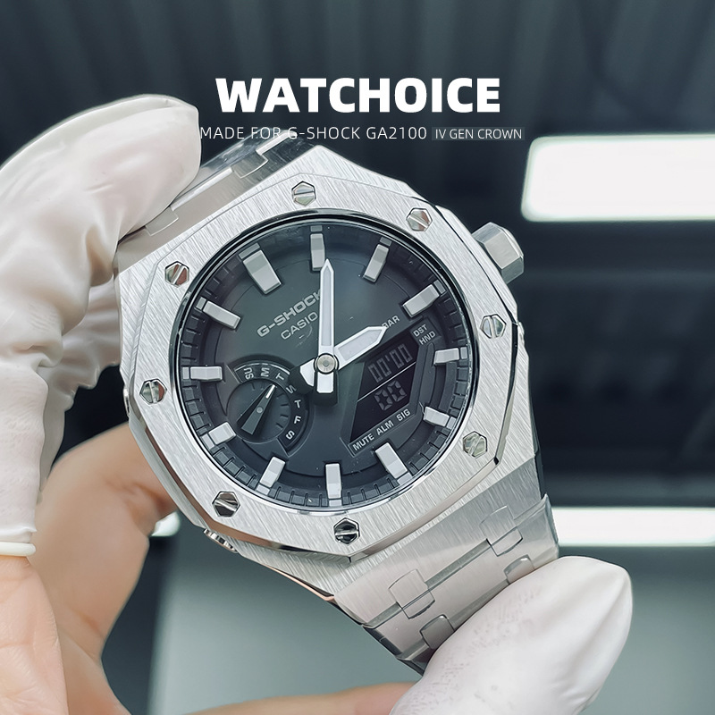 GA2100改装配件5代316L不锈钢表壳蝴蝶扣AP农家橡树金属电镀套装