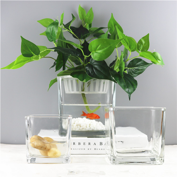 批发水培玻璃瓶创意方缸玻璃花瓶透明绿萝铜钱草水养植物器皿