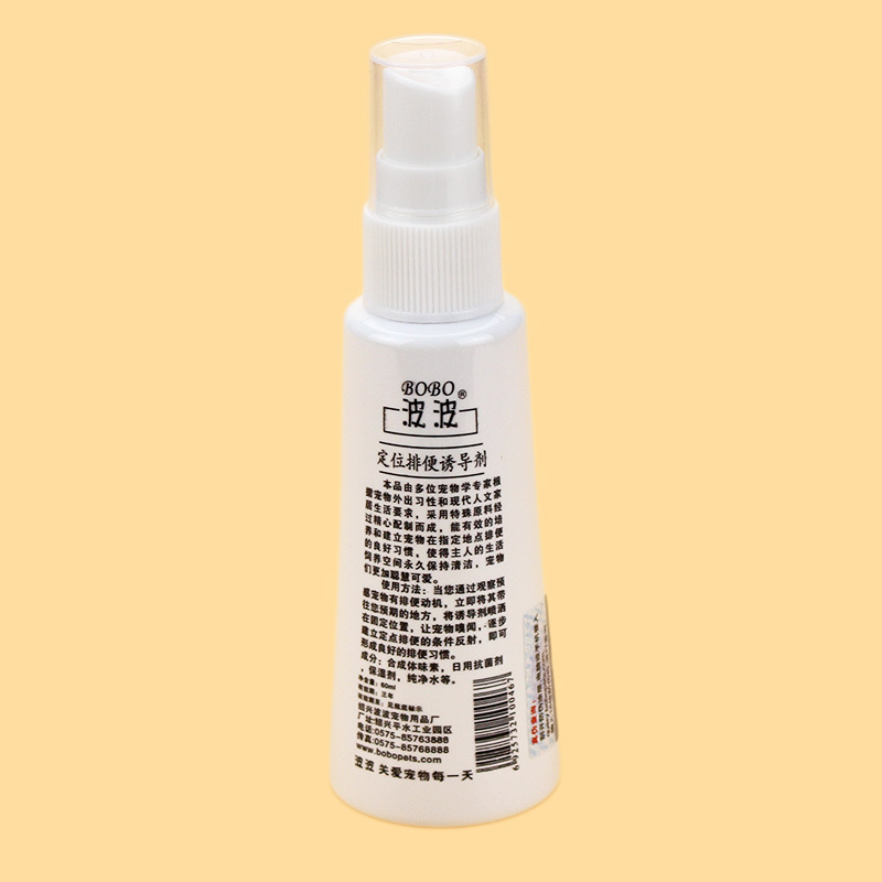 【商品介绍】:定位排便诱导剂根据宠物生理特征,帮助宠物建立定点排便条件反射,可诱导宠物在固定地点排便,培养和建立宠物良好的排便习惯。长期使用营造一个健康、清洁的生活环境,使宠物和家人生活更加愉快。