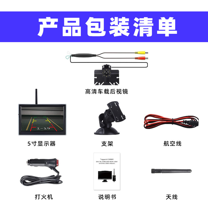 汽车载显示器倒车雷达影像系统一体机4探头 可夜视高清摄像头12v