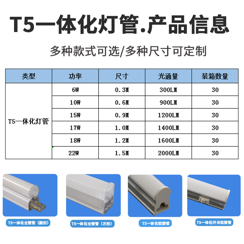 默认发T5一体化铝塑管、带开关加1.5元需要其他款式请联系客服报价。