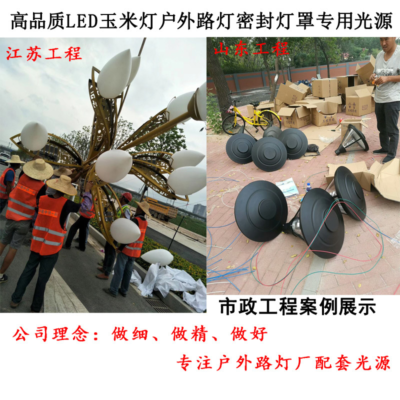 注意:此款产品为定制产品。欢迎光临,我司专门生产户外照明光源,外观和批发家装类的光源好像差不多,但是材料是有区别的,包括铝基板厚度,灯珠和驱动还有内部线路都是精心设计,有经验的都知道,如果把家装类的玉米灯用在户外密封灯罩里,使用寿命基本不会超过3个月,我司定制的在户外可以使用2年,因为材料各方面用的好,所以成本也比较高,用对灯在往后的维护中可以省很多事情包括省去昂贵的售后成本。工厂联系人:李生15089953020